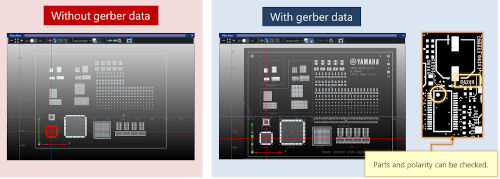 Por otro lado, hay casos en los que no se proporcionan los datos gerber necesarios para crear la imagen de la placa. YsUP ayuda a los usuarios a crear una imagen de placa de alta calidad escaneando la placa en bruto y escalando la imagen correctamente utilizando un calibre de cristal. A continuación, la imagen de la placa puede combinarse con el programa de montaje convertido mediante un editor visual.